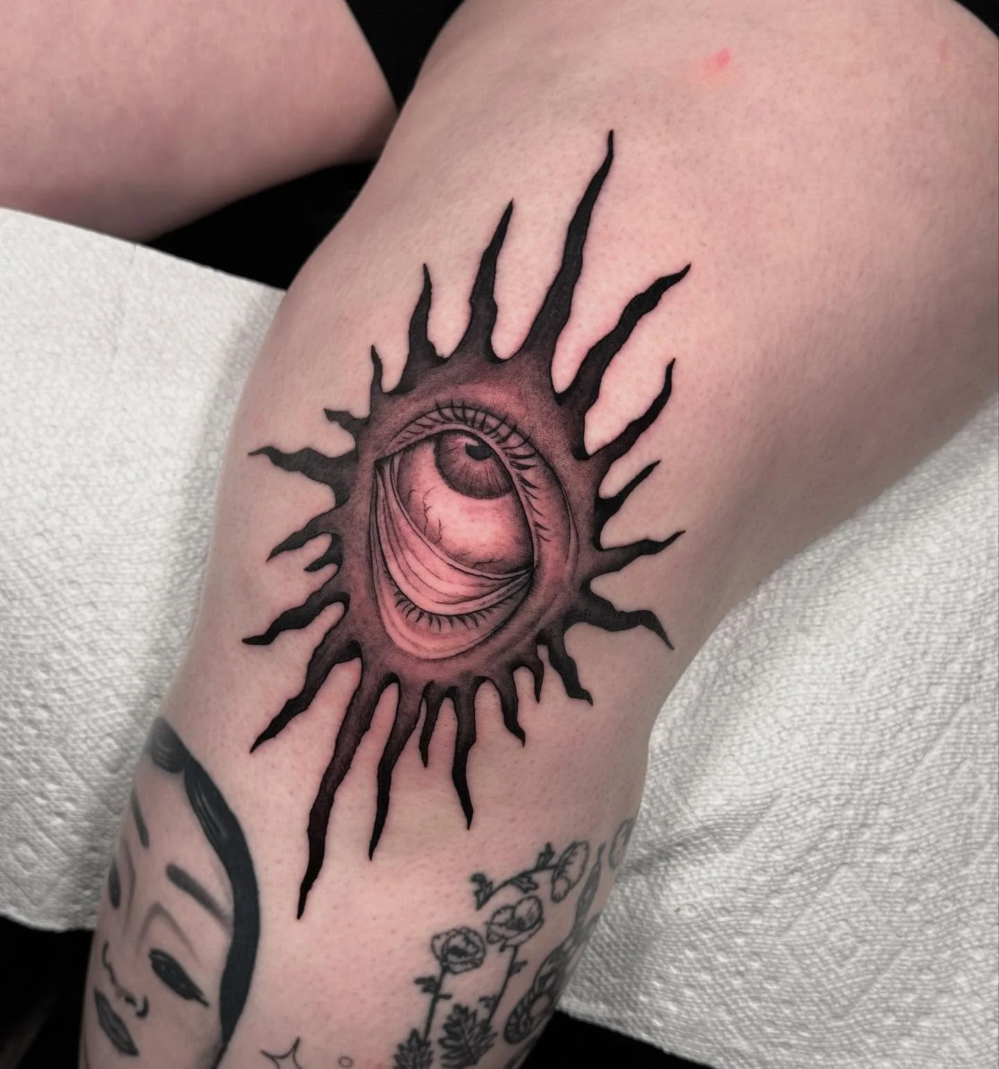 #DARKART #ladytattooer #southcarolina #artseries #eyetattoo #blackwork #kneetattoo