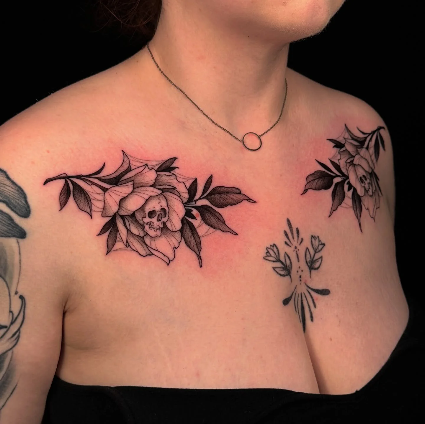 #ladytattooer #blackwork #collarbone #skulls #southcarolina