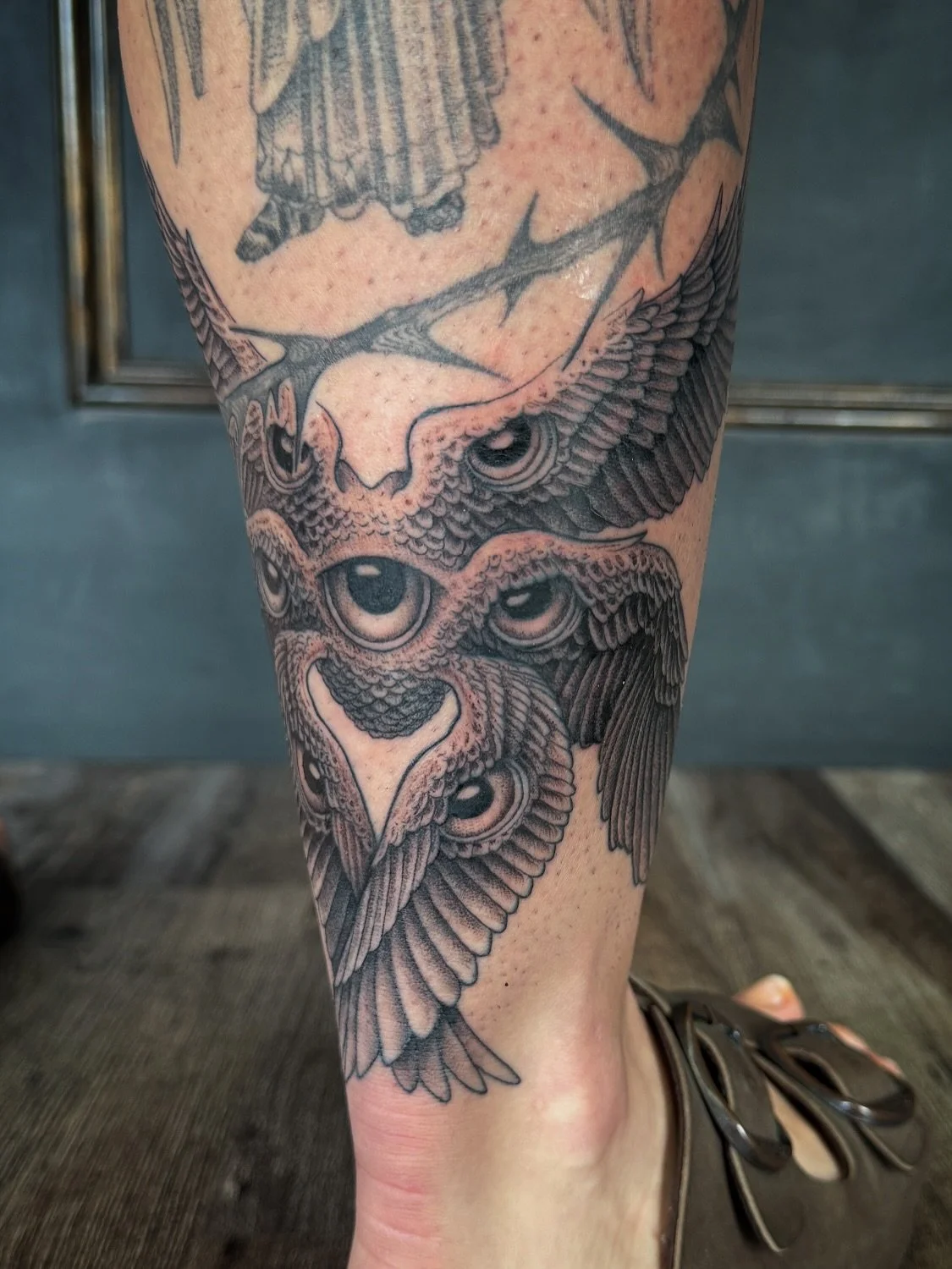View fullsize Seraph for Anna πŸ–€πŸ‘οΈ fully custom filler, to fit between these other gorgeous tattoos made by @sweetpeatattoos